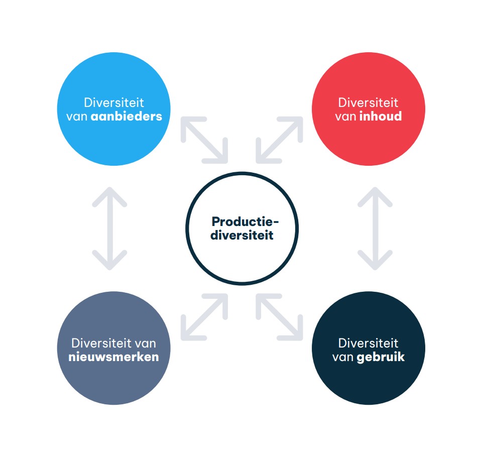 In het algemeen wordt gesteld dat hoe groter de diversiteit in invalshoeken in het media-aanbod, hoe beter burgers in staat zijn om deel te kunnen nemen aan het publieke debat. Een mogelijkheid om de mate van diversiteit van het media-aanbod te belichten, is door te kijken naar de omvang en verscheidenheid van het aanbod. Hierin is bijvoorbeeld de overlap in media-aanbod tussen mediamerken, al dan niet binnen één aanbieder, belangrijk. Er zou een grote verscheidenheid moeten bestaan in de onderwerpen en invalshoeken die worden belicht. Aan de andere kant kunnen we inzicht geven in de diversiteit van actoren die opgevoerd worden in het media-aanbod en de informatievoorziening. Bijvoorbeeld de afspiegeling van de diversiteit van de bevolking in het media-aanbod is hierin belangrijk. Dit kan bijvoorbeeld gaan om de representatie van gemarginaliseerde groepen in het media-aanbod.